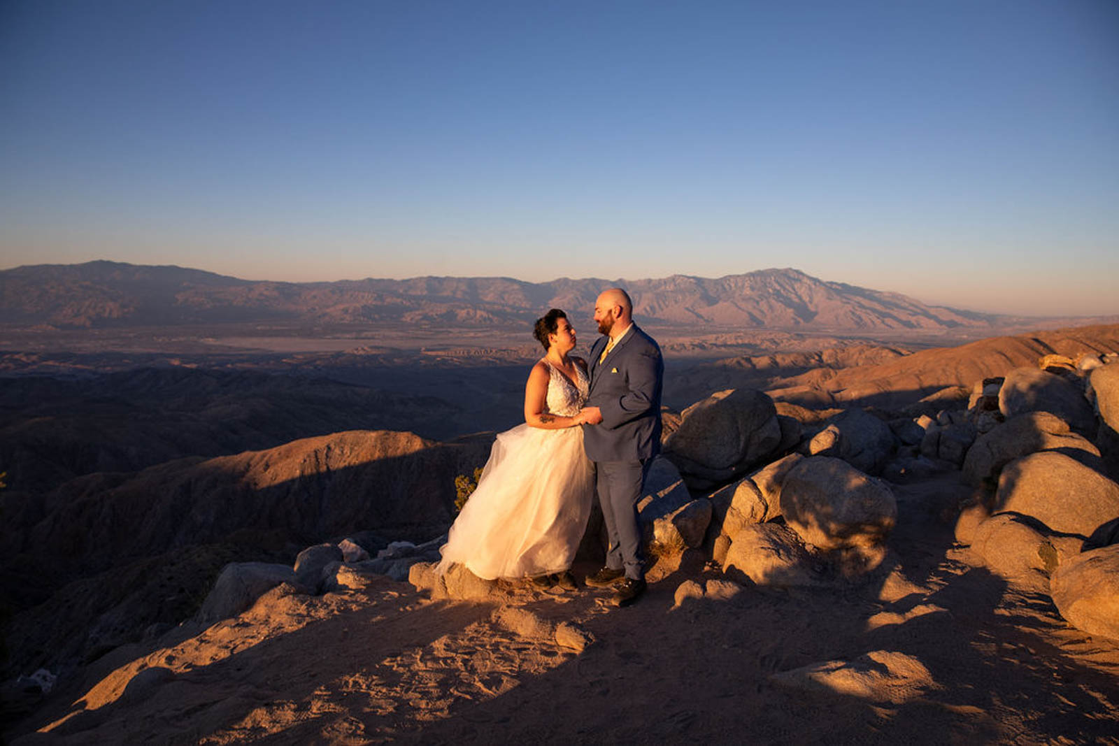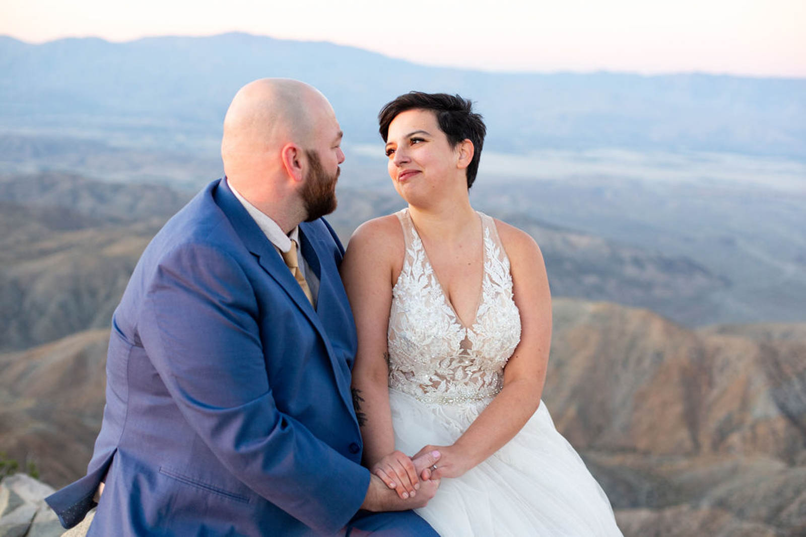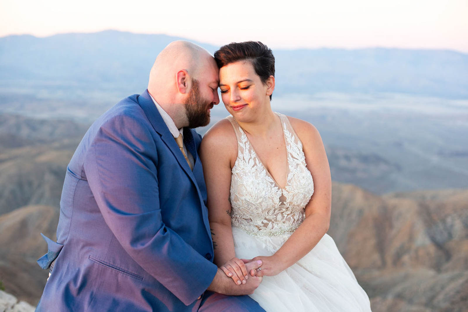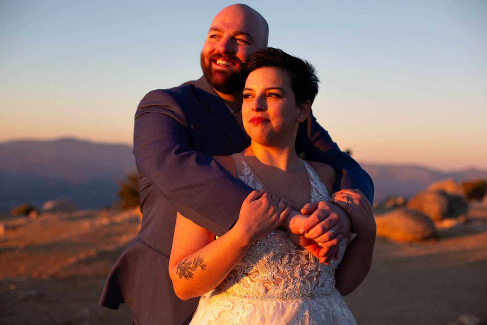We met before the sun was up at Key’s View. It was freezing, and the sky felt endless. Key’s View overlooks the Coachella Valley, which many people know from the festival by the same name. Thankfully, we had the overlook all to ourselves. As the sun rose, the valley lit up slowly. Pink and purple tones spread across the horizon. There is no light like sunrise. I mostly stayed quiet and let Amy and David cuddle close for warmth. Meanwhile, they soaked in the joy of being married the night before.