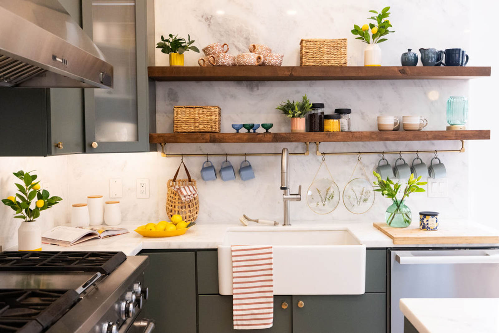 In the kitchen vignette, the styling leaned bright and welcoming. Serving pieces and everyday essentials looked elevated, and the curated accents added personality. Then, small details brought the scene to life, from the way items were arranged to the pops of color throughout.