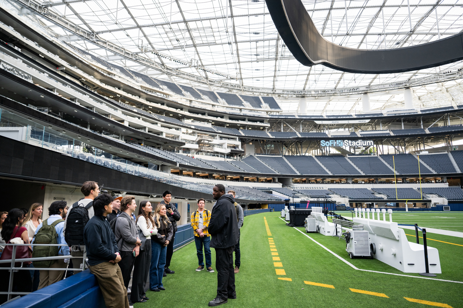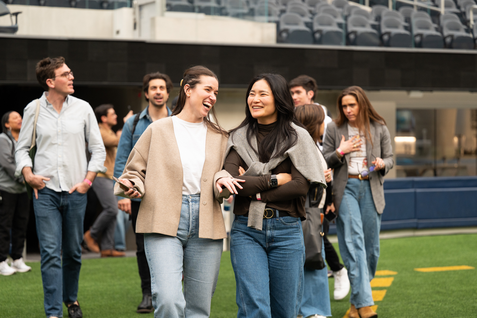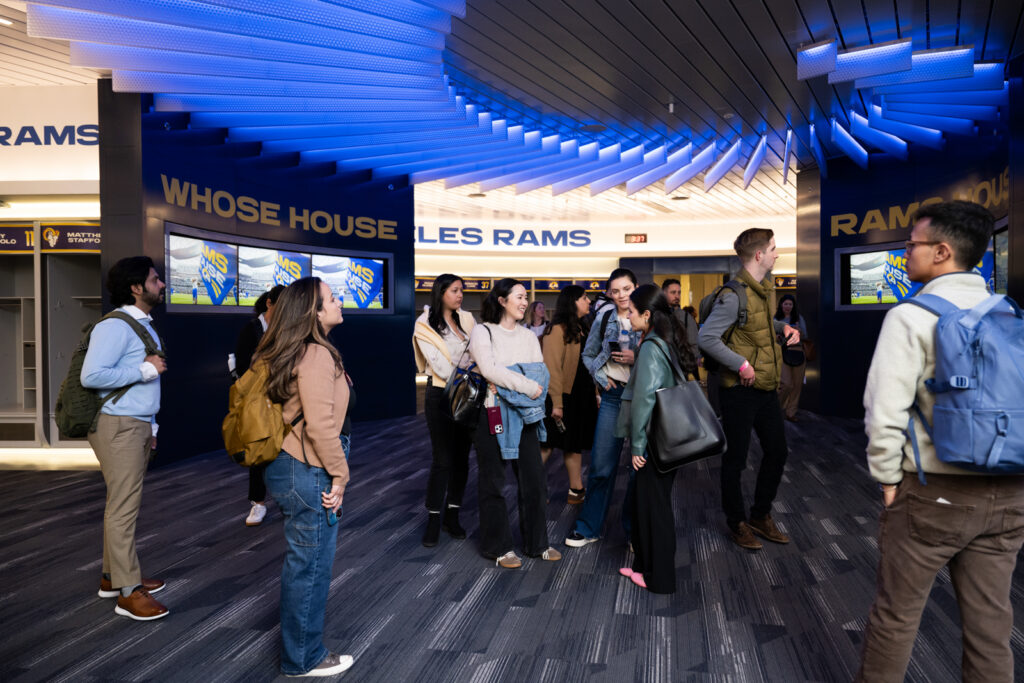 After the educational portion wrapped, attendees enjoyed lunch before heading out for a private stadium tour. This is where the event shifted into a more playful and team-building experience. It was so much fun watching everyone enter the Rams locker room and immediately search for their favorite players’ lockers. That moment sparked genuine excitement and plenty of laughter. It also gave guests a rare behind-the-scenes look at one of Los Angeles’ most iconic venues.